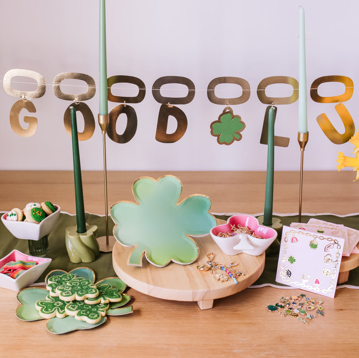 The brand-new Lucky Collection brings all the charm and none of the cheesy plastic leprechauns (because we have standards). Setting the table with this Shindig set is so easy, it's almost like magic. Think cute clovers, luxe gold accents, and just the right amount of green. So grab the gals, turn on your lucky girl playlist, and you've got yourself the easiest party you'll ever throw!