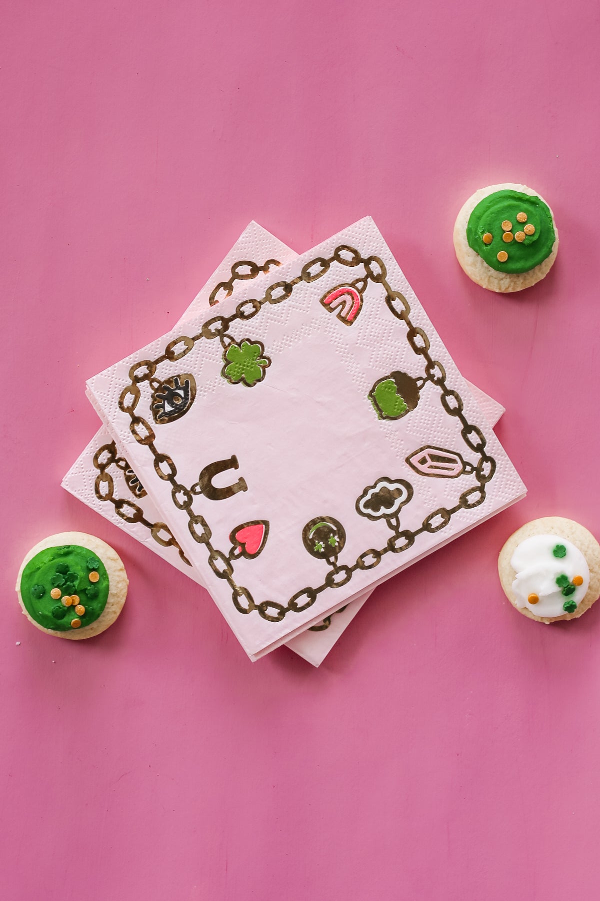 🍀 18 charm bracelet cocktail napkins with gold foil detail